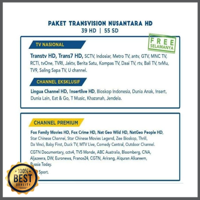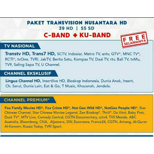 Untuk paket ini transvision juga sudah.