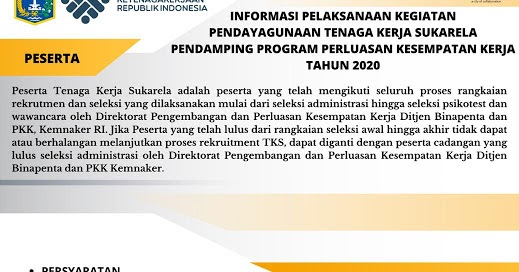 Tks kemnaker go id rekrutmen. Periode pendaftaran tks kemnaker. Lowongan kerja rekrutmen tks kementerian ketenagakerjaan ri september 2020 update lowongan kerja rekrutmen tks kementerian ketenagakerjaan ri september 2020 terbaru lowongan kerja rekrutmen tks kementerian ketenagakerjaan ri september 2020 adalah salah satu perusahaan multi nasional yang bergerak di bidang lowongan kerja rekrutmen tks kementerian ketenagakerjaan. Rekrutmen net kementerian ketenagakerjaan ri disingkat kemnaker merupakan kementerian dalam pemerintah indonesia yang membidangi urusan ketenagakerjaan. Tenaga kerja sarjana persyaratan.